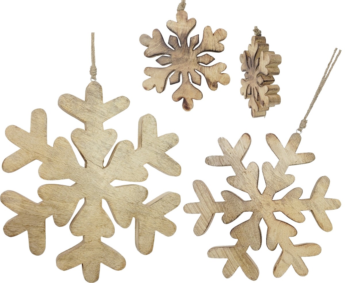 in Legno & C. COD: A.074.73 DECO fiocco di neve legno mango 3 misure cm 15,5/25,5/30,5 Confezione da 9 pezzi.