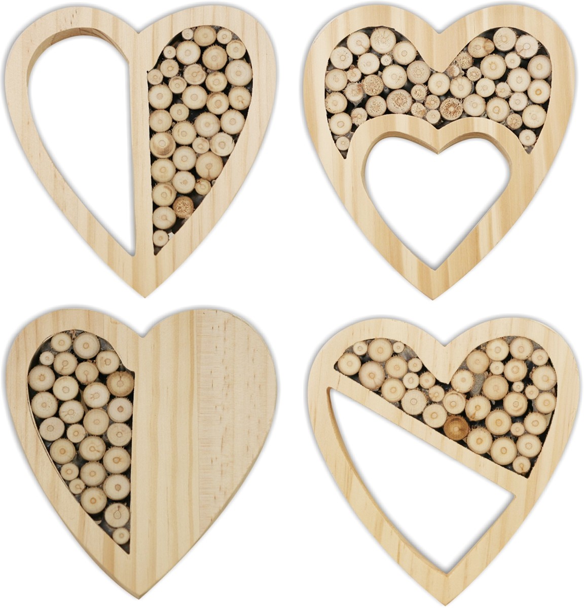 Sottopentola COD: A.075.20 Sottopentola cuore in legno di pino con tronchetti 4 sogg. cm 12,5x2x13 Confezione da 24 pezzi.