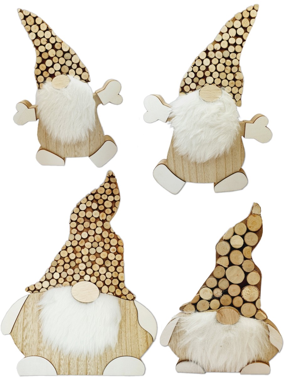 ... da appendere & C. gnomi COD: A.075.49 Deco legno gnomo con cappello di legnetti 4 sogg. cm 31/33/27,5/26 H Confezione da 8 pezzi.