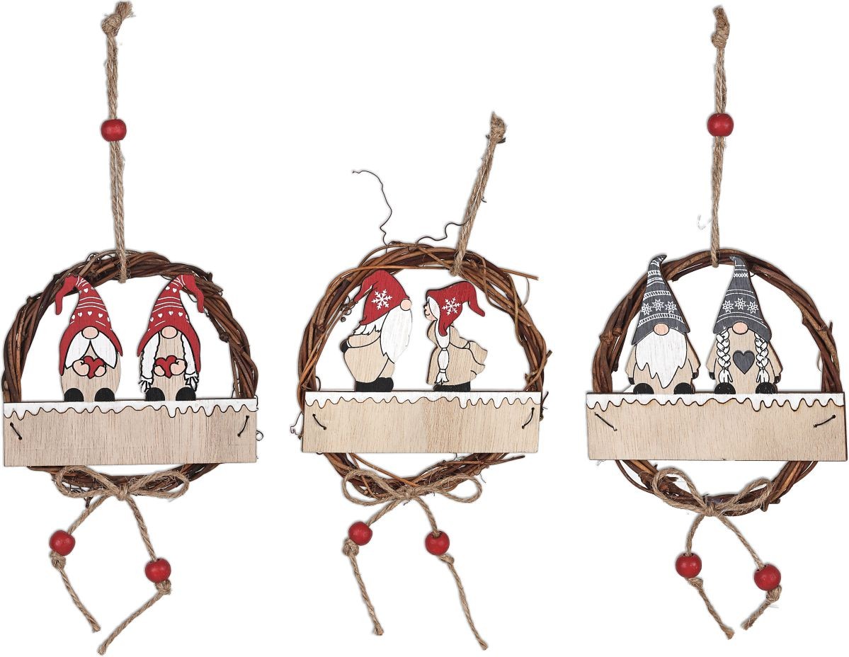 ... da appendere & C. gnomi COD: A.075.56 Deco legno rametti+coppie gnomi 3 sogg. cm ø11,5 H Confezione da 24 pezzi.