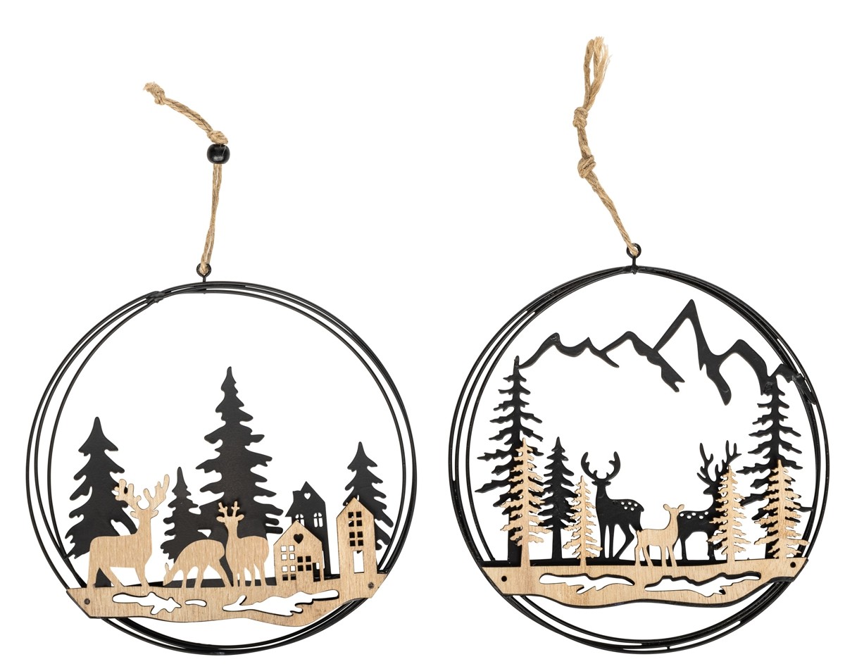 ... da appendere COD: A.076.42 Deco metallo+legno bosco/cervo da appendere 2 sogg. cm 17 Confezione da 12 pezzi.
