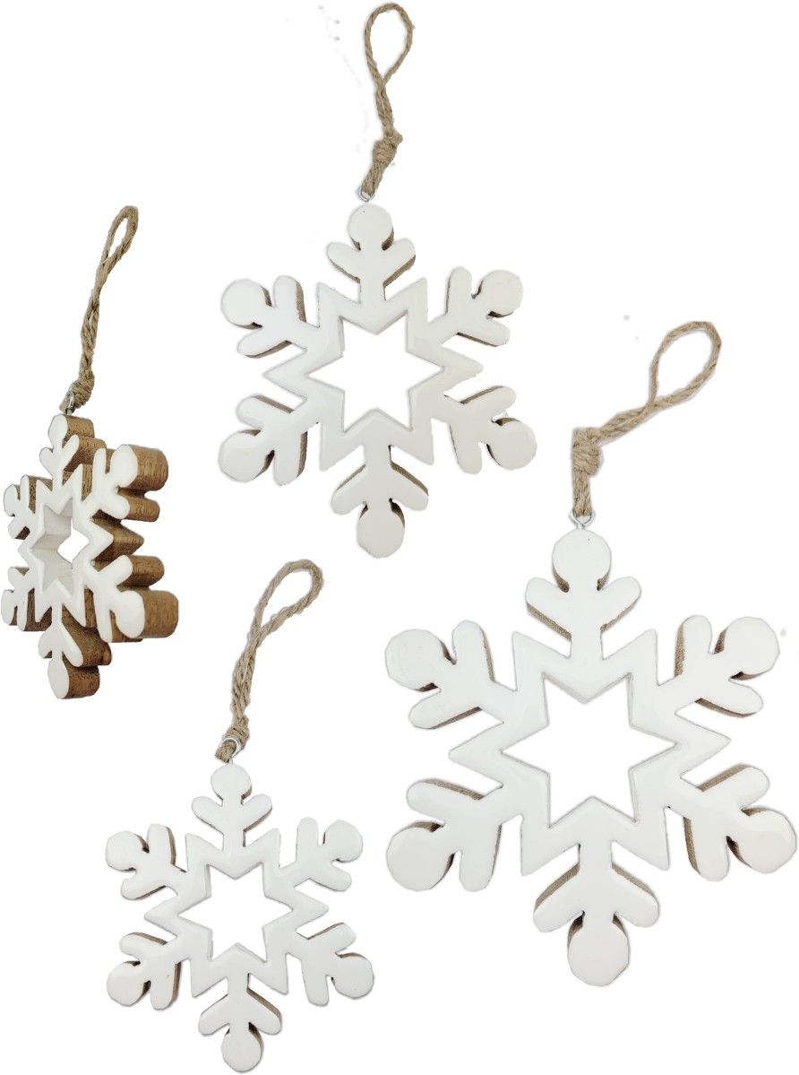 ... da appendere COD: A.079.79 Legno mango smaltato bianco fiocchi neve 3 sogg. cm 10/12/15 H Confezione da 12 pezzi.