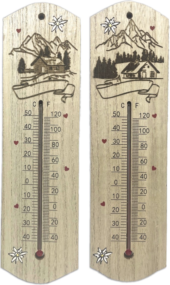 Termometri COD: A.300.20 ESTATE_Termometro in legno paesino di montagna cm 7,5x27 H Confezione da 12 pezzi.