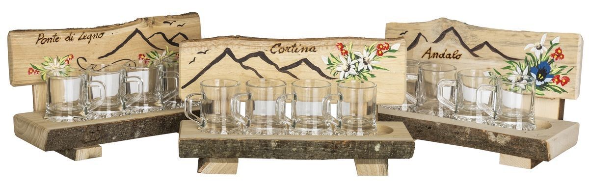 Servizi Grappa & C. COD: R.044.D Servizio grappa-Panca gr 4 bocc. cm 21x8x13 H - MONTAGNA ESTATE Confezione da 3 pezzi.