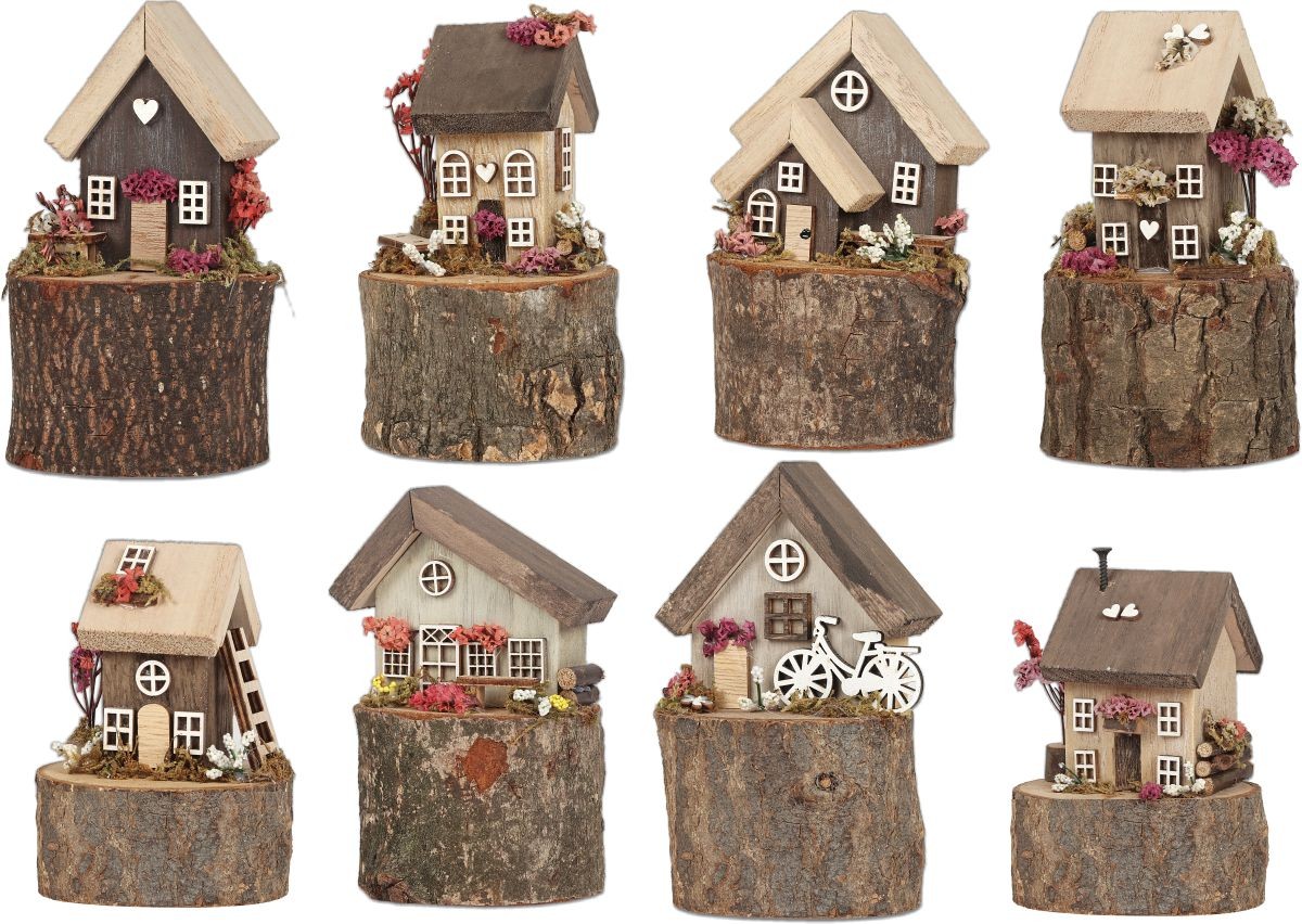 collezione casette in legno, poly, DMF COD: X.900.45 Mini house estate con base alta 8 sogg. cm ca 12/13,5 H Confezione da 8 pezzi.