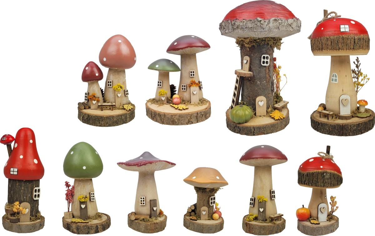 ... collezione animali COD: X.900.48 Funghetti autunno 10 sogg. SET24: 2xL/4xM/18xS Confezione da 24 pezzi.