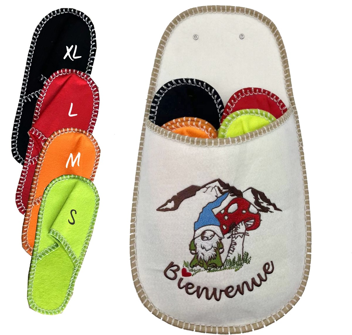 Pantofoloni COD: Z.190.62 Set 4 pantofole ospiti in feltro "BIENVENUE" gnome et champignon Confezione da 3 pezzi.
