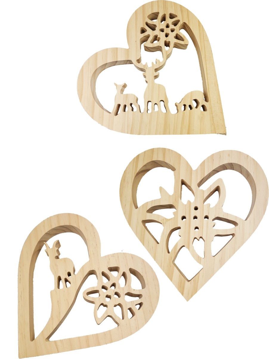 Sottopentola legno cuore design 3 sogg. cm 18